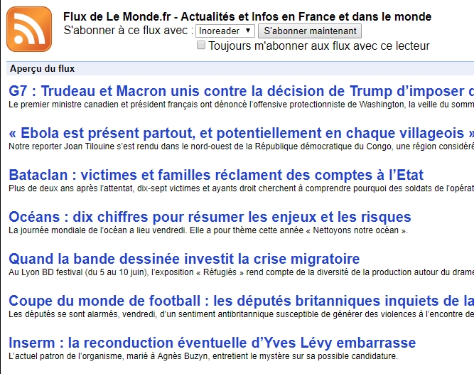 - A partir de maintenant le menu déroulant vous permet de vous abonner à un flux directement dans votre agrégateur favori